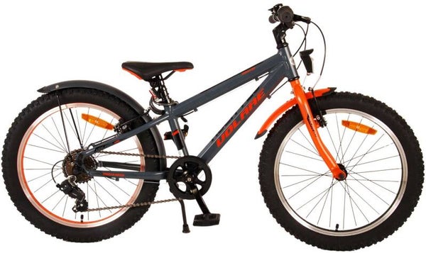 De Volare Jongensfiets 20 inch is een lichtgewicht en stoere fiets, perfect voor kinderen van 6-8 jaar (kledingmaat 116-128). Uitgerust met 6 versnellingen, aluminium V-remmen en een stevige aluminium standaard. Het sportieve design in grijs en oranje, gecombineerd met fat tires, maakt deze fiets ideaal voor avontuur en dagelijks gebruik.